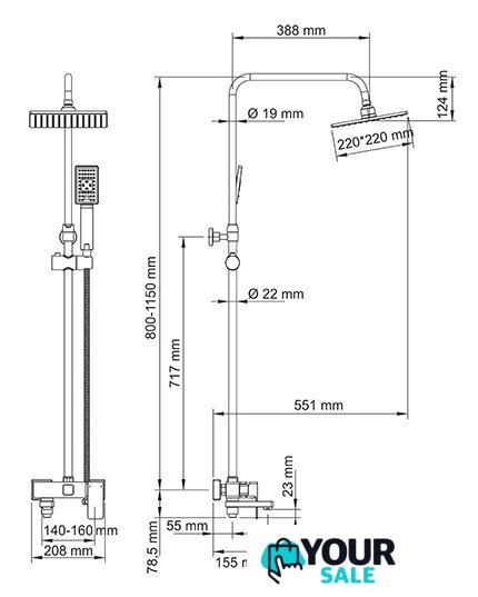 | Диаметр (ширина) верхнего душа | 220 мм |