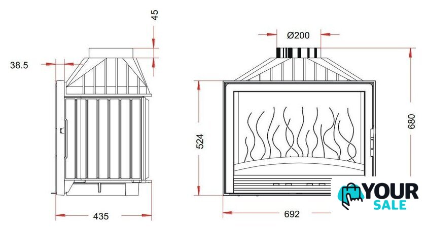 | Диаметр дымохода | 200 мм |