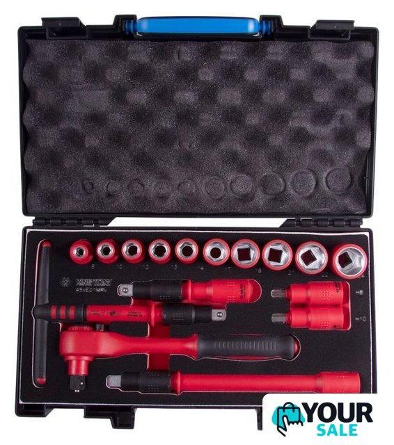| Комплектация | Головки торцевые диэлектрические и принадлежности 1/2":– Короткие 6-гранные – 8, 10, 12, 13, 14, 17, 19, 21, 22, 24 (4335VE)– Трещотка флажковая с кнопкой – 24 зубца, 250 мм (4771VE-10)– Вороток Т-образный – 200 мм (4178VE-08)– Удлинитель – 125 мм (4221VE-05)– Удлинитель – 250 мм (4221VE-10)Насадки (биты) торцевые диэлектрические 1/2":– HEX L=75 мм – H8, H10 (4025VE)Ложемент – EVA, 186 × 375 мм (№8)Пластиковый футляр – ABS, 389 × 229 × 66 мм (820003) |