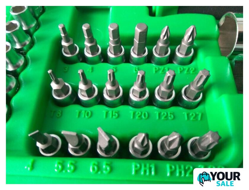 | Комплектация | Головка торцевая 1/4": 4, 4.5, 5, 5.5, 6, 7, 8, 9, 10, 11, 12, 13 ммГоловка торцевая 1/2": 14, 15, 16, 17, 18, 19, 20, 22, 24, 27, 30, 32 ммСвечная головка 1/2" магнитная: 16, 21 ммТрещотка 1/4" 36 зубцов (резиновая ручка)Трещотка 1/2" 36 зубцов (резиновая ручка)Ключи комбинированные 8,10,11,12, 13,14,17,19, 22 ммГоловка с насадкой Hex 1/4": 3, 4, 5, 6 ммГоловка с насадкой Torx 1/4": T8, T10, T15, T20, T25, Т 27, T30Головка с шлицевой насадкой 1/4": 4, 5.5, 6.5 ммГоловка с насадкой PH 1/4": PH1, PH2Насадка PZ 1/4": PZ1, PZ2Насадка 5/16" Hex: 8, 10, 12, 14 ммНасадка 5/16" Torx: T40, T45, T50, T55, 60Насадка 5/16" для ударной отвертки: 8,10,12 ммНасадка 5/16" PZ: PZ3, PZ4Удлинитель 1/4" 50 ммУдлинитель 1/4" 100 ммУдлинитель 1/2" 125 ммУдлинитель 1/2" 250 ммКардан 1/4"Кардан 1/2"Вороток-отвертка 1/4"150 ммВороток 1/4" с плавающей головкой 115 ммДержатель бит 1/2 х 5/16"Гибкий вал 1/4"Переходник 3/8 х 1/2"с отверстием |