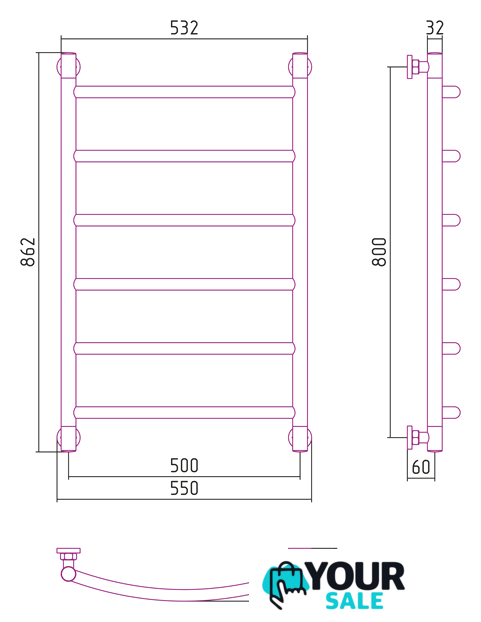 | Посадочное (межосевое) расстояние | 500 мм (- при нижнем подключении, при диагональном и вертикальном - 500 мм) |