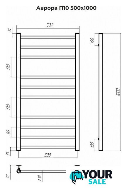 | Посадочное (межосевое) расстояние | 500 мм |