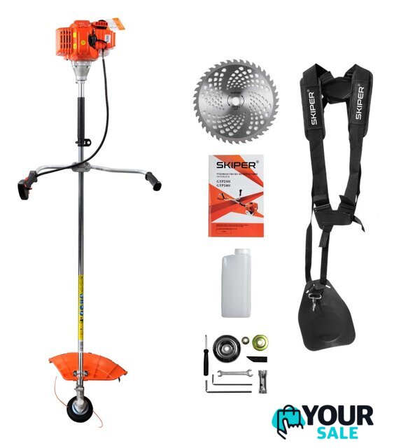 | Аксессуары | - Комплект болтов для сборки;- Два шестигранных ключа;- Комбинированная отвёртка;- Косильная головка;- Пильный диск;- Двуплечный ремень;- Ёмкость для подготовки топливной смеси;- Инструкция по эксплуатации с гарантийным талоном. |