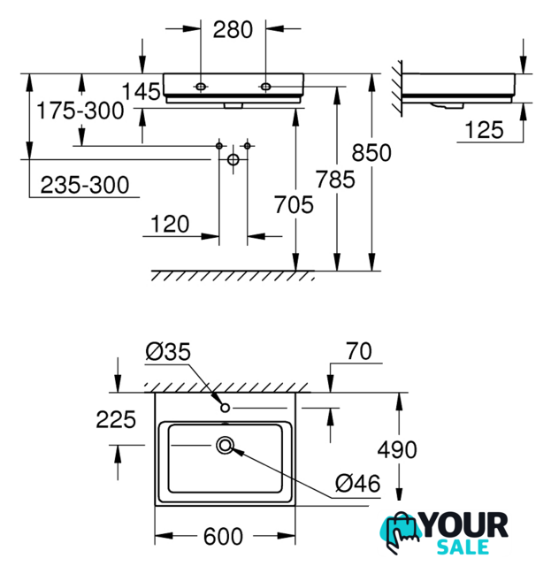 | Отверстие под смеситель | 1 (+2 намеченных отверстия) |