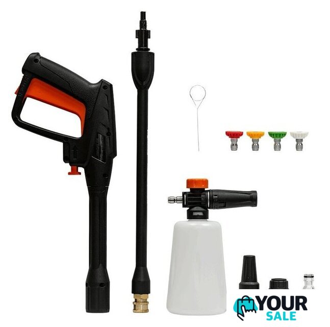 | Комплектация | • мойка, • шланг высокого давления, • пистолет, • трубка струйная с быстросьемным коннектором, • 4 быстросьемных сопла, • турбо насадка, • пеногенератор с регулировкой, • быстросьем для шланга, • входной фильтр, • игла для прочистки, • руководство по эксплуатации, • гарантийный талон |