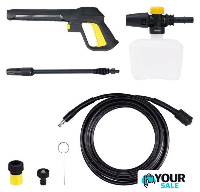 | Комплектация | - мойка высокого давления, - шланг 8 м,- пистолет-распылитель, - пеногенератор, - быстросъём для шланга 3/4", - переходник с фильтром, - игла для очистки сопла пистолета, - руководство по эксплуатации. |