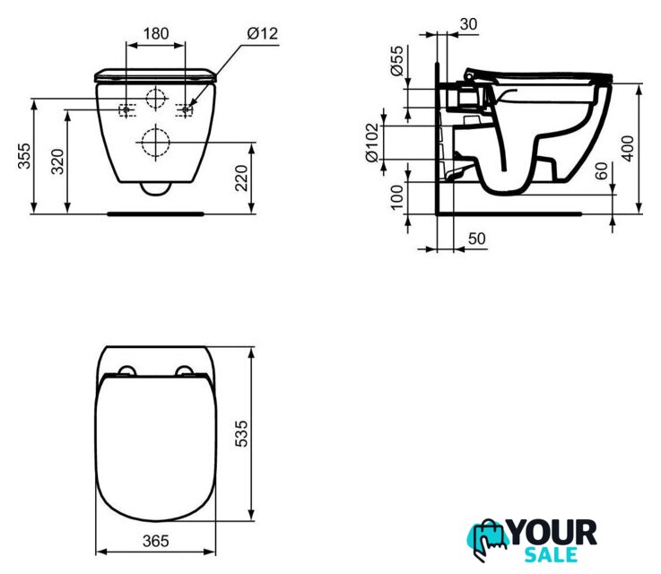 | Отверстия под инсталляцию | 180 мм |
